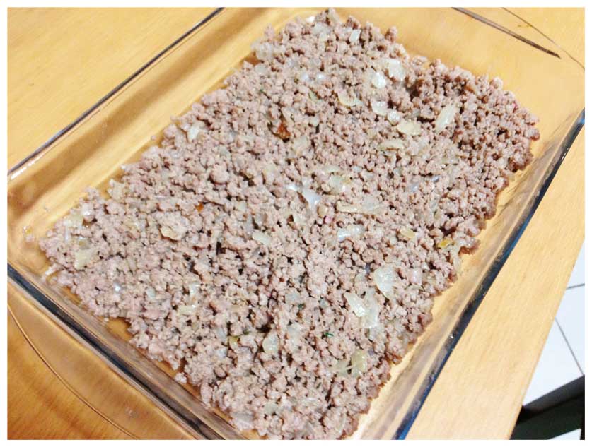 - Now’s time to build our hachis Parmentier: fill a dish with the ragout at the bottom, then the mashed potato and on top of it the emmental.
